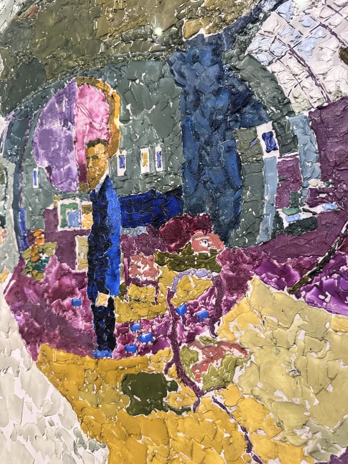 Despite these open questions of the painting’s meaning, the brushwork itself and the short, tessellated strokes of moody, introspective colors make for a visually compelling piece.